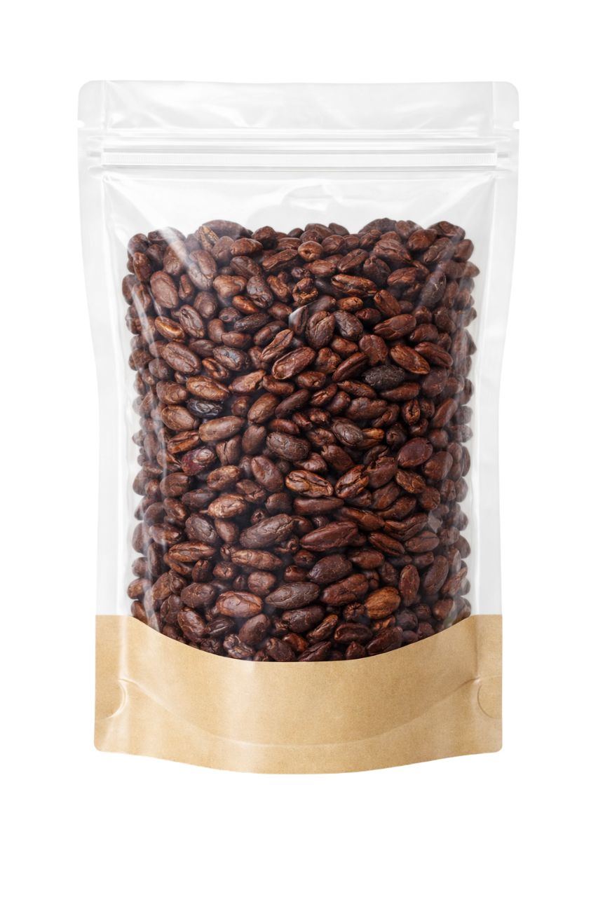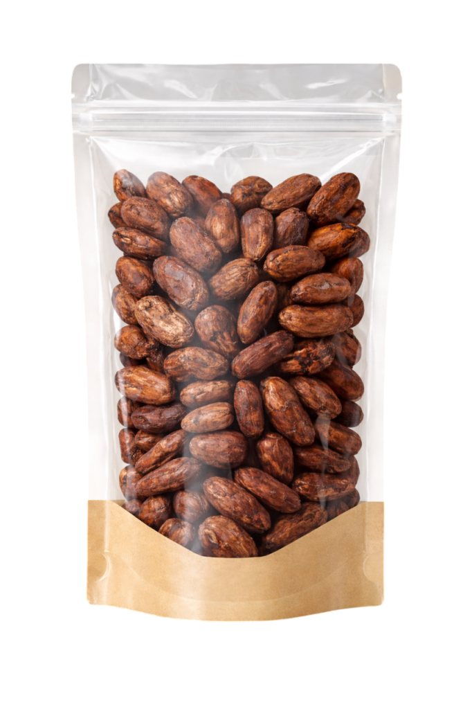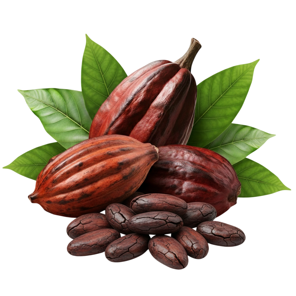 Cacao de las variedades Criollo y CCN 51 cultivado en un clima tropical, entre campos verdes, cosechado